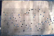 The comparison of two messages to look for repeats was made easier by punching the messages onto thin cards about 250 millimetres (9.8 in) high by several metres (yards) wide, depending on the length of message. A hole at the top of a column on the card represented an 'A' at that position, a hole at the bottom represented a 'Z'. The two message-cards were laid on top of each other on a light-box and where the light shone through, there was a repeat. This made it much simpler to detect and count the repeats. The cards were printed in Banbury in Oxfordshire. They became known as 'banburies' at Bletchley Park, and hence the procedure using them: Banburismus.[18]