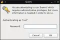 GKSu and GKsudo: GTK+ Graphical frontend to su and sudo.[7] GKsu comes up automatically when a supported application needs to perform an action requiring root privileges. A replacement, "gksu PolicyKit", which uses PolicyKit rather than su/sudo, is being developed as part of GNOME.[8] |