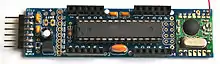 | Raspduino[96] | Bitwizard[97] | ATmega328 | 16 MHz | Fully Arduino compatible board, that fits perfectly on a Raspberry Pi, and can be programmed through the Raspberry Pi's serial interface. It also breaks out the Raspberry Pi's SPI and I2C interfaces, or can be used as a stand-alone Arduino when powered with the external power header. | ||||||||||||||