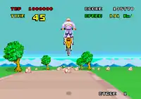 Enduro Racer is a motorcycle racing game based on the sport of Enduro. The player rides a dirt bike through seven stages, which have elevation changes and turns, and must avoid other riders as well as logs and boulders. Controls for the game are based on a motorcycle's handlebars, with a throttle and brake control. Players can pull up the handlebars on the cabinet to perform a wheelie. Jumping over logs is also possible, but players have to land with the wheelie technique or risk crashing. During the race, players are competing against a timer. Though the timer stops when the player has crashed, restarting is slow and consumes time.[4]