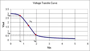 Digital inverter quality is often measured using the voltage transfer curve (VTC), which is a plot of output vs. input voltage. From such a graph, device parameters including noise tolerance, gain, and operating logic levels can be obtained.