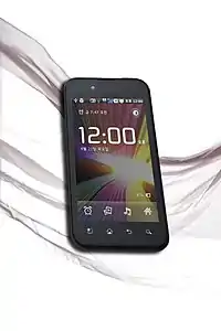 The LG P970 Optimus Black is a smartphone designed and manufactured by LG Electronics and was released in 2011. At 9.2 mm in thickness, it was LG's thinnest smartphone at the time of its release, and is slightly thinner than the iPhone 4. The LG Optimus Black features a WVGA NOVA display which has a brightness measured at 749 nits, which surpasses the 700 nits promised by LG.[4] LG Optimus Black is claimed to be the first smartphone with a 2MP front camera.[5]