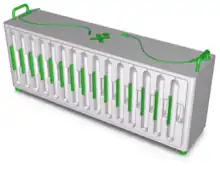 Power options include batteries, solar power panels, and human-powered generators, which make the XO self-powered equipment. 10 batteries at once can be charged from the school building power in the XO multi-battery charger. The low power use, combined with these power options are useful in many countries that lack a power infrastructure.
