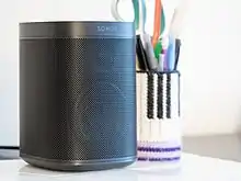 The Sonos One is a smart speaker developed by Sonos, announced on October 4, 2017 and released on October 24.[2] The speaker contains a six-microphone array, allowing use of the virtual assistants, Amazon Alexa and Google Assistant.[3] In 2018, the smart speaker added support for Apple's AirPlay 2.[4]
