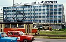 VEB Kombinat Robotron (German: [vaʊ eː beː kɔmbɪnaːt ʁobotʁɔn]) (or simply Robotron) was the largest East German electronics manufacturer. It was headquartered in Dresden and employed 68,000 people in 1989. Its products included personal computers, SM EVM minicomputers, the ESER mainframe computers, various computer peripherals as well as microcomputers, radios, television sets and other items including cookie press Kleingebäckpresse Typ 102.[1]