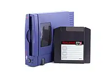 The Zip drive is a removable floppy disk storage system that was announced by Iomega in 1994 and began shipping in March 1995.[1] Considered medium-to-high-capacity at the time of its release, Zip disks were originally launched with capacities of 100 MB, then 250 MB, and finally 750 MB.